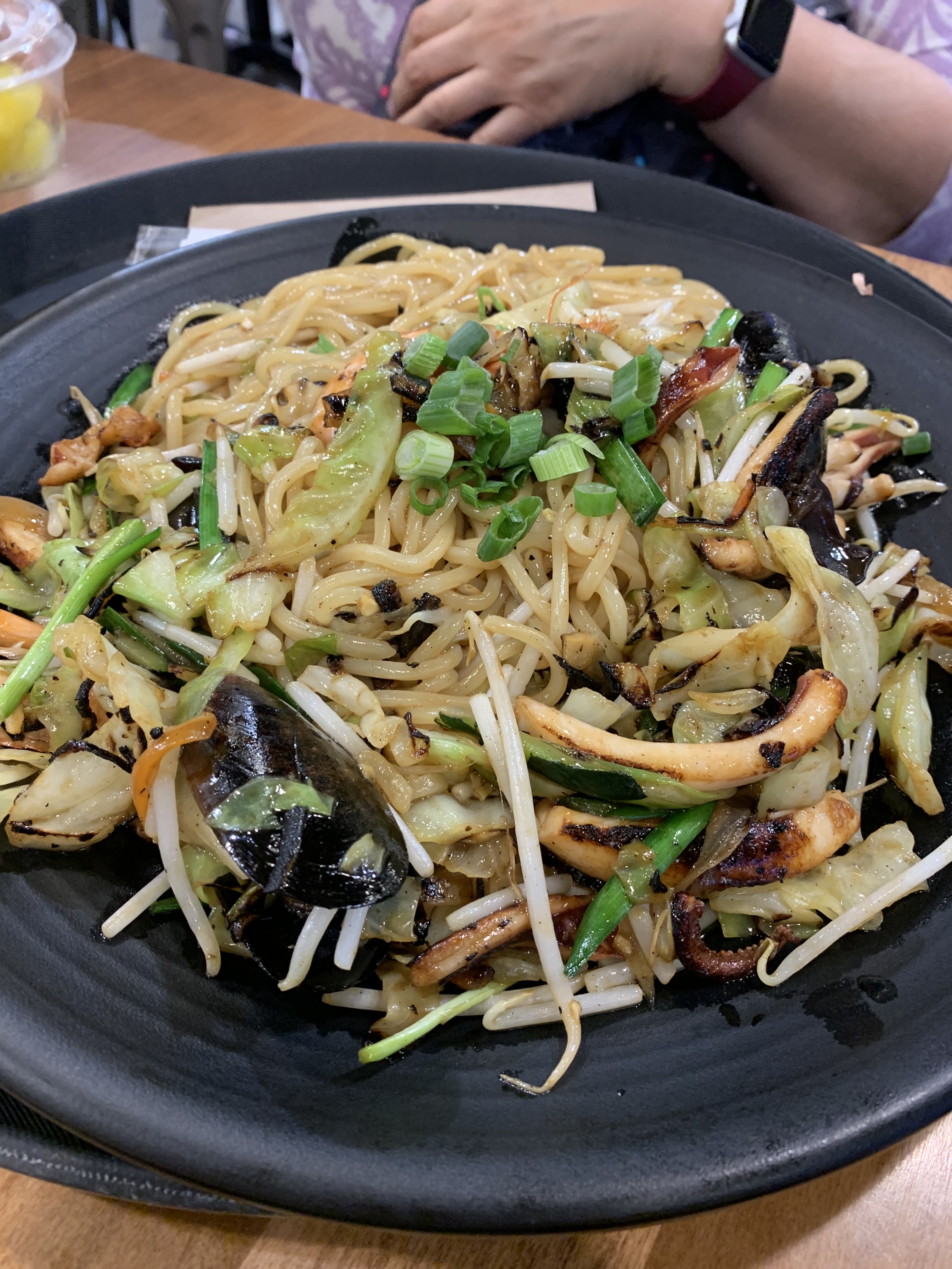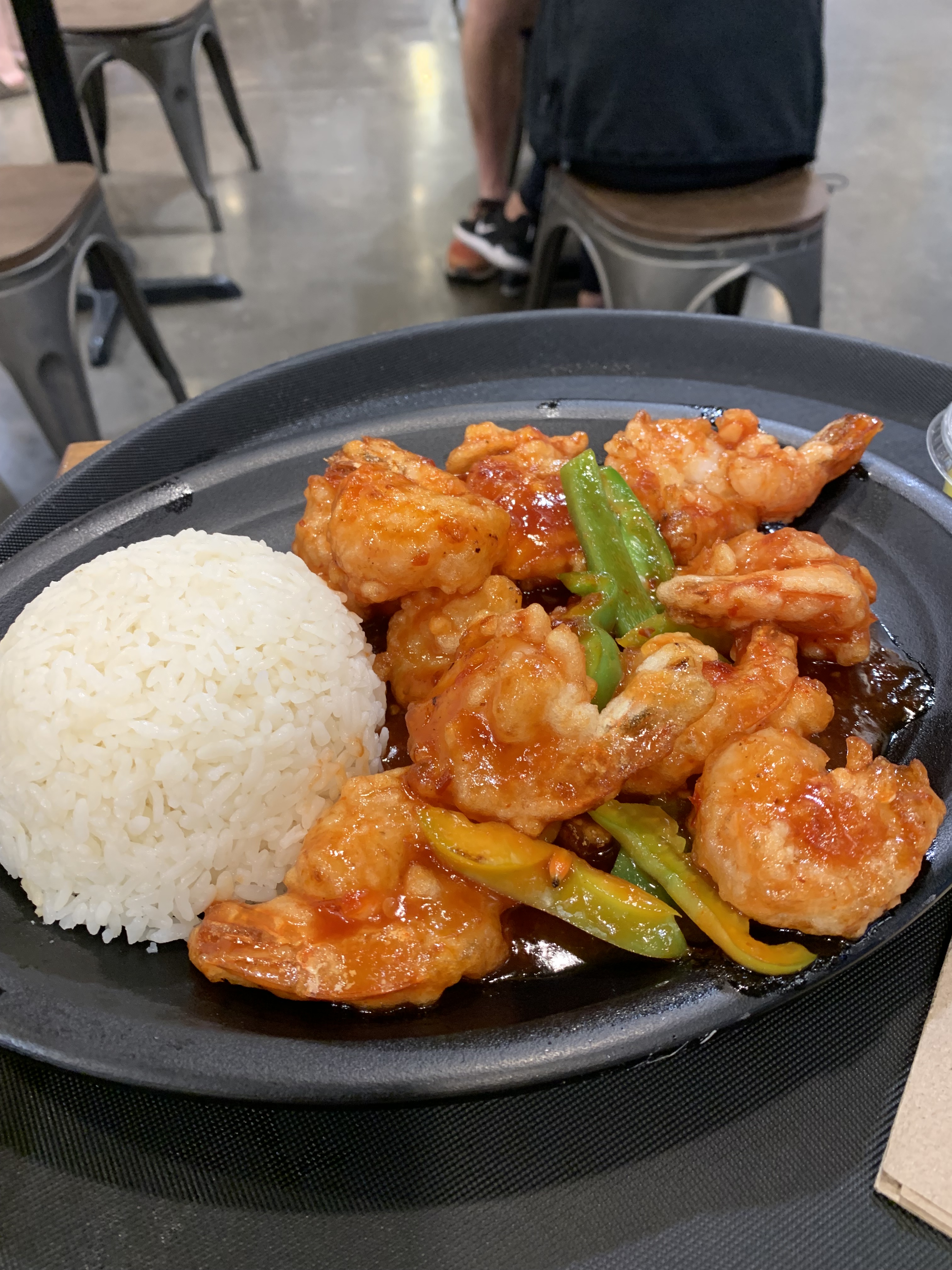 After we left the airport we decided to head over to the H Mart in Mesa which is a Korean grocery store. The reason we chose to go here is because H Marts typically also have a food court so we could kill two birds with one stone. First we ate in the food court, ordering from two different restaurant vendors and then we shopped for snacks and drinks for the trip. The food court had quite a few options including a fried chicken place, a tonkatsu place, a chinese-korean place, etc. We ordered a hot stone bibimbap, stir fried seafood noodles (that ended up quite burnt tasting) and fried shrimp covered in sauce.