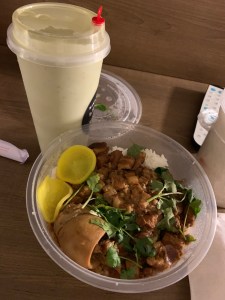 The menu had items from Mainland China, from Hong Kong and from Taiwan. They also had a plethora of tea drinks and smoothies. Much to my delight they had an Avocado Smash drink that was basically an avocado smoothie which I love. My mom decided to try it as well and really liked it too. If you like avocado, I highly recommend trying an avocado smoothie. I have tried making it at home but it never tastes as good. My guess is I do not add enough sweetener. We also ordered congee for my mom and minced pork rice. We originally ordered another item but they ran out. It worked out though because avocado smoothies are actually quite filling. We did not even finish the minced pork rice that night but had leftovers for breakfast the next morning. The minced pork was pretty good but I felt like the rice was just slightly undercooked.
