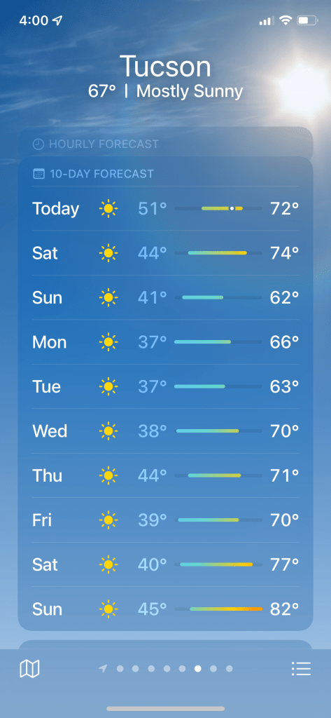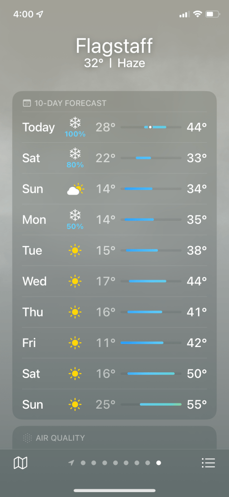 There were a few things I learned during this trip. First off, driving from southern Arizona to northern Arizona just showed how varied the state is in terms of environment, temperature and so forth. In Phoenix and Tucson, only a light jacket or windbreaker was needed and it was mostly flat with lots of cacti. Flagstaff was freezing cold and snowing. Petrified Forest National Park was chilly but not as cold as Flagstaff and was not snowing though it started to halfway through the drive back to Flagstaff. Page was colder than southern Arizona but not as cold as Flagstaff and had a lot of shorter bushier looking trees spread more far apart. Basically, it might be Arizona which is known for crazy high temps in the summer but winter is still winter. However, the sun was pretty strong still except when it was snowing in Flagstaff.