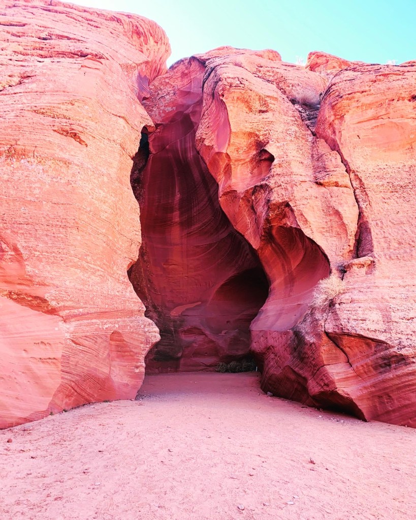 When we went inside and began to walk through, we came to realize what a pro our tour guide Sherry was. She told us about the canyon and about different “images” you could see in the rock (kind of like when you see animals or items when looking at clouds). She also told us the best ways to take photos and helped with phone settings and filter. She was really good about not letting the group behind us push us forward to quickly and making sure we all got the photos we wanted before moving on. She also helped take a lot of group photos, individual photos and just photos on the slot canyon. We never felt any huge pressure to rush and ended up with a lot of great photos.