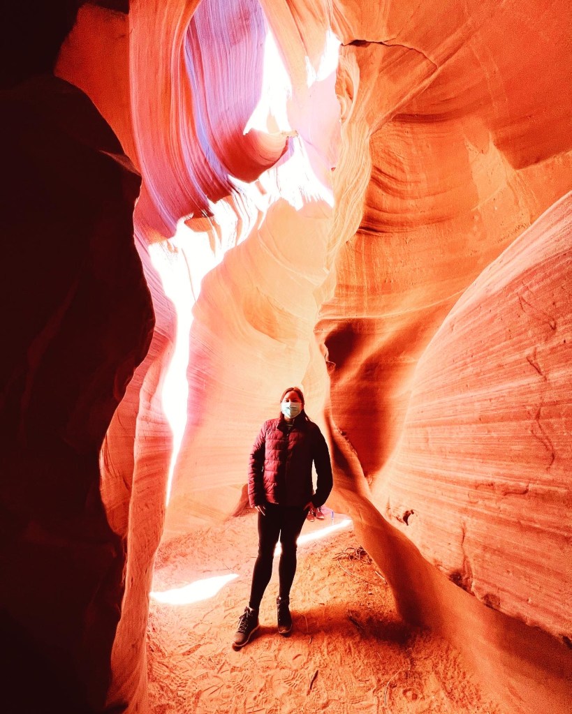 By absolute luck, they were able to fit us on the next tour that would start in about 45 minutes. However, walk-in reservations did have to be paid fully in cash and it was $100 per person for about a 90 minute tour. Something to keep in mind if you are trying to walk-in. Other things to know are that they have porter-pottys at the check-in are but not by the canyon so if you need to, use them while waiting. Each group is also only allowed one bag and you are not allowed to bring any tripods or selfie sticks. If absolutely needed, they will allow you to bring walking sticks or trekking poles. Also, as of early March 2022, the Navajo Nation still had a mask mandate and you need to wear a mask whenever on Navajo grounds, including in the canyon. They would not let you take off your mask for photos. In fact they stated if anyone did so, they would immediately be removed and brought back to the parking lot.