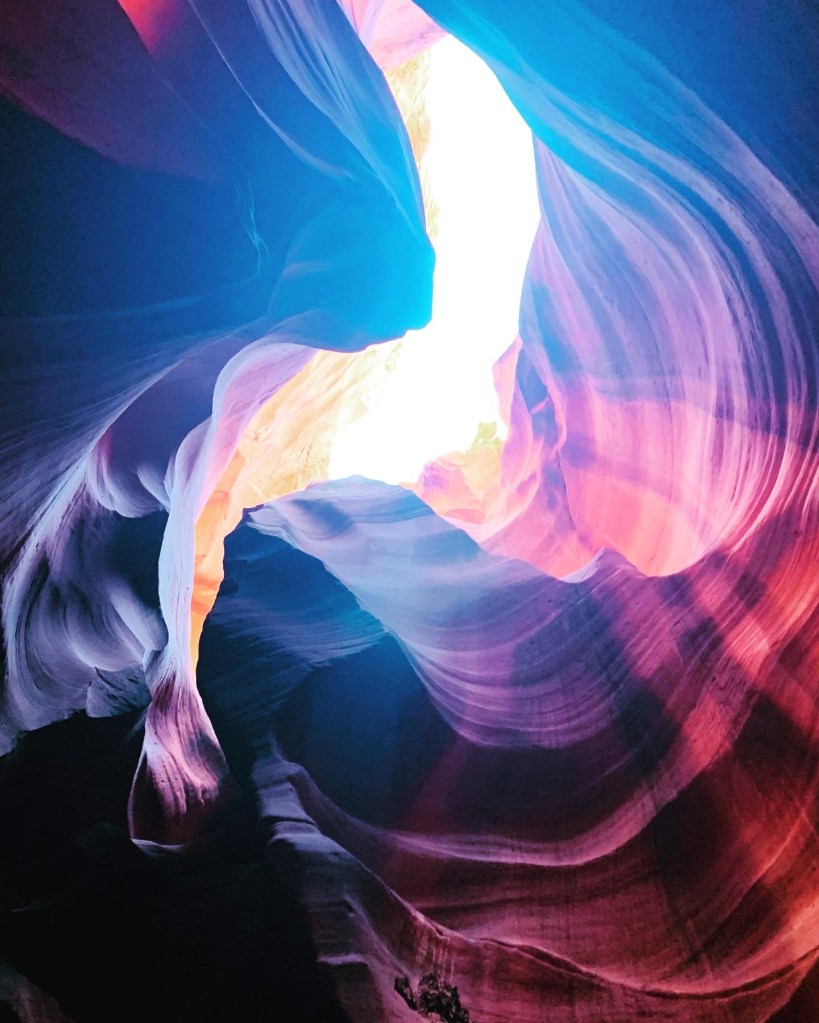 Then there is Lower Antelope Canyon which is also beautiful but the chance for light beams is much smaller and requires a more strenuous hike that involves ladders. Also, because the upper canyon are is in an A-frame (wider at the bottom and more narrow at the top) it is easier to walk through. The lower canyon is more of a V-frame meaning it’s narrow at the bottom (where you are walking) and wider on top. Not too mention the lower canyon tours are cheaper and usually less crowded since there are only two tour operators.