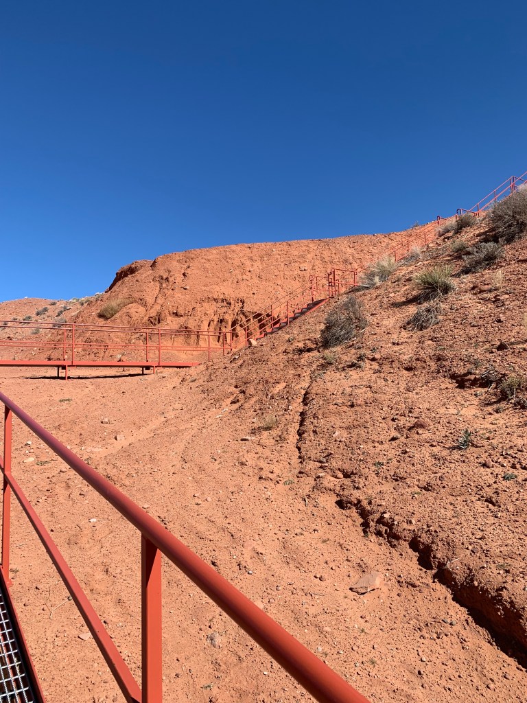 After you walk through the slot canyon (which is even elevation throughout), you exit and then have to go down a set of stairs. This was unexpected because I had not read anything about the stairs and change in elevation upon exiting and was a bit worried since it would be quite challenging for my mom. Luckily, Sherry did not rush us and we just took it slowly.