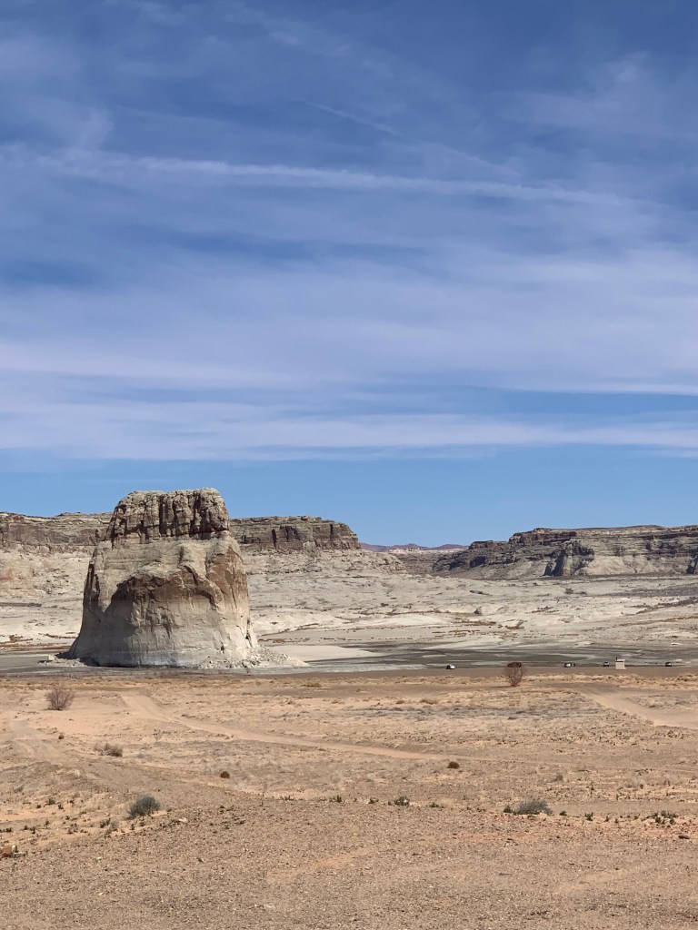Instead we continued into the national recreational area where you do need a park pass. We stopped by Wahweap and also Lone Rock Beach. We were originally planning to eat at the resort in Wahweap but their restaurant was only open for dinner. I think the drought was most obvious when we were at Lone Rock Beach. When I was there I thought it was just another rock-like structure jutting out but apparently the rock is usually at least partially submerged in water but when we were there, there was no water to be found.