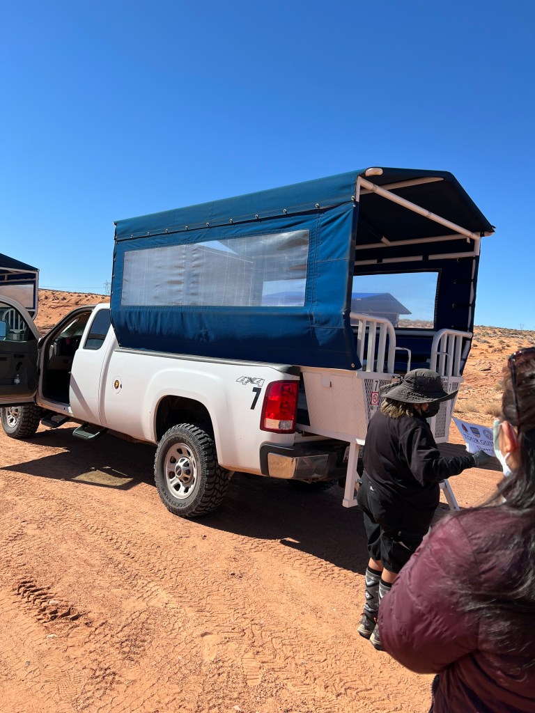 Unlike the lower canyon where you can just walk over to the canyon, for upper canyon tours you have to be driven over and each tour operator drives a different vehicle. Ours used trucks with a semi-open seating area that could fit up to 12 people. The ride can be a little bumpy in certain parts. Some of the other tour operators had enclosed vans if that is your preference. Though there are five different operators, they are all owned within one Navajo family.