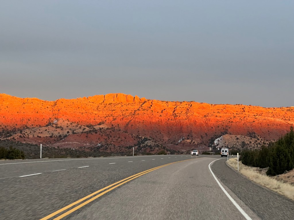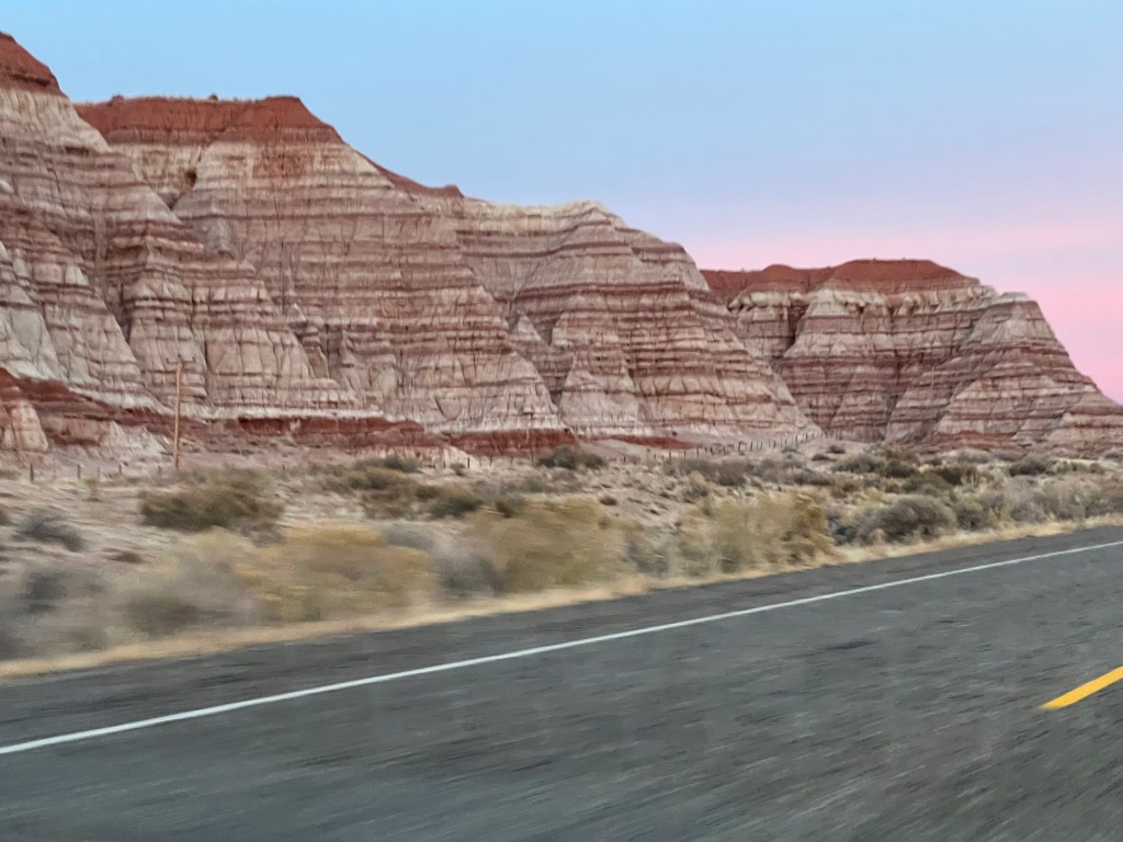 By the time we reached Kenab, we were getting close to sunset so we did not make any stops and instead continued on so we would not need to drive too long in the dark before reaching Page. This time, we took the US-89 instead of the US-89A. Honestly, they are both pretty scenic but the US-89 is much easier to drive since it does not have the escalation gain the US-89A has through Kaibab National Forest. Either drive is maybe a little over an hour (or more if you make stops). The US-89A has the views of the Vermillion Cliffs but the US-89 also borders the southern side of the Grand Staircase-Escalante National Monument and we saw lots of beautiful, distinctly color-banded cliffs on the drive back to Page.