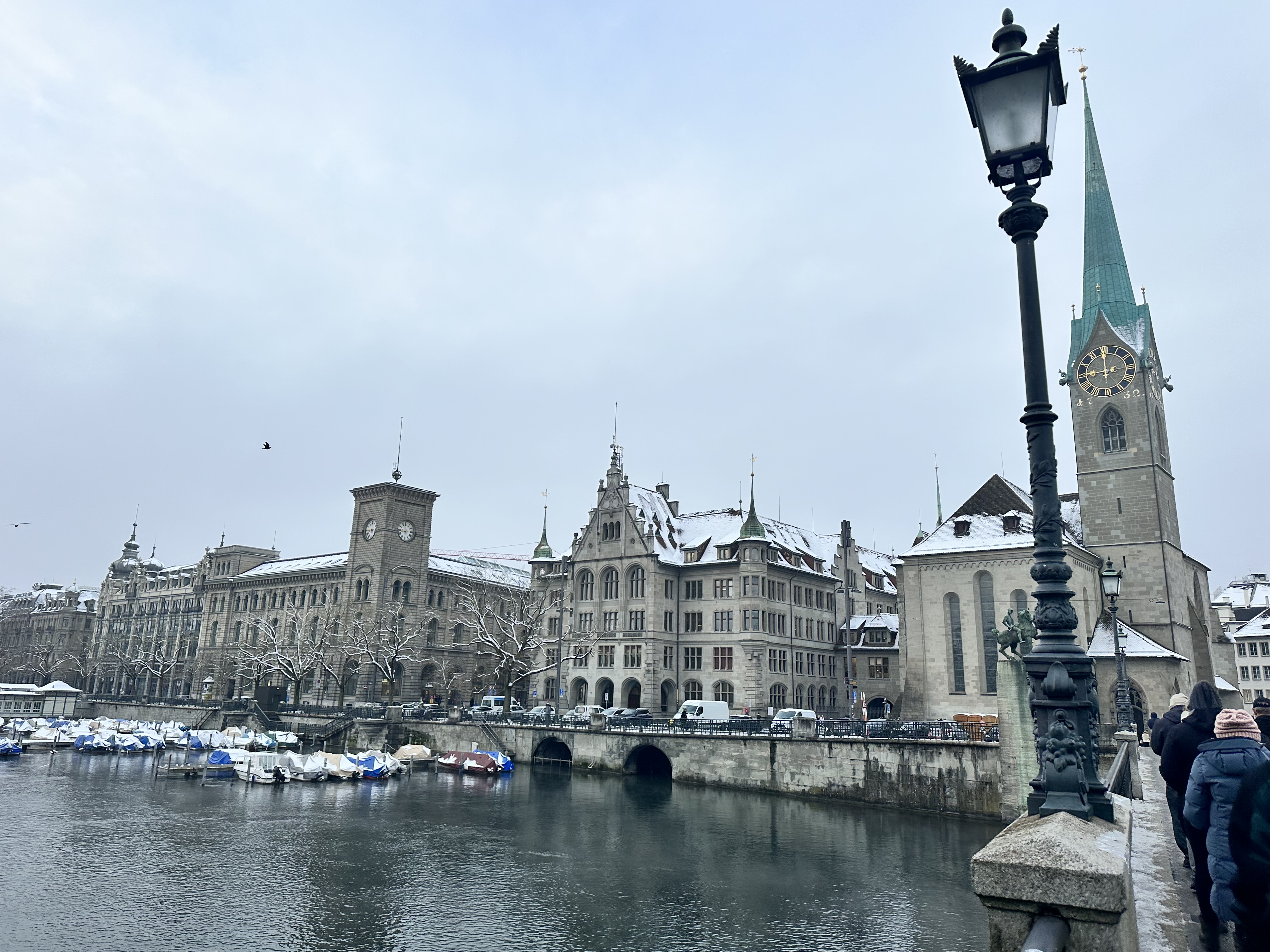 Afterwards, we took the bus back to the city center to the main train station Hauptbahnhof or HB. I could have sworn there was a Christmas market in the station but I either read wrong or mixed up stations. Either way, this station had a lot of shops inside so we walked around, stopping in some of the Swiss grocery stores like Coop and Migros to pick up some water and look at their chocolate selection. I also bought some chocolate-covered corn flakes from Läderach which I love. And because we had a welcome dinner at 6 PM, we headed back to the hotel to check-in to our room and get ready. It was just a few stops from the main station.